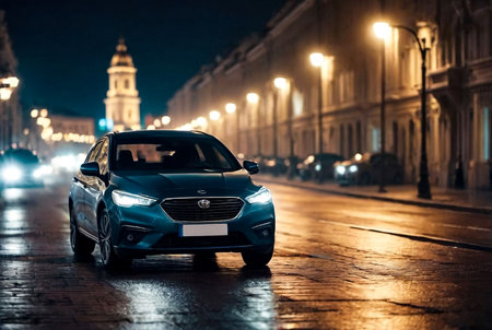 Modern passenger car is on the road