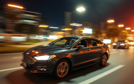 Car on the road at night with motion blur. Blurred background