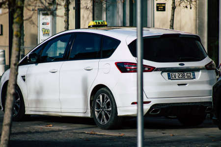 Reims France November 25, 2019 View of a taxi parked in the streets of Reims in the afternoon