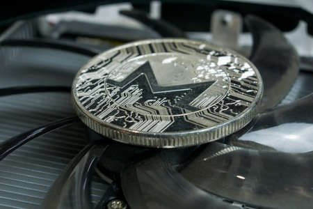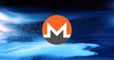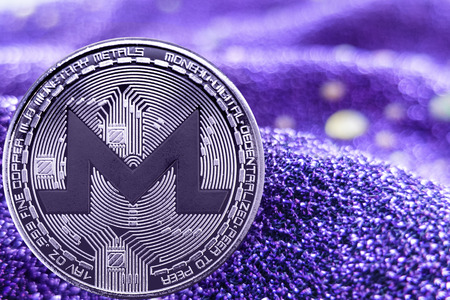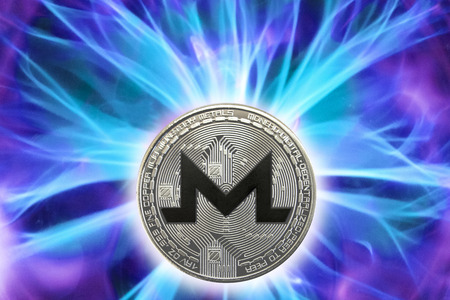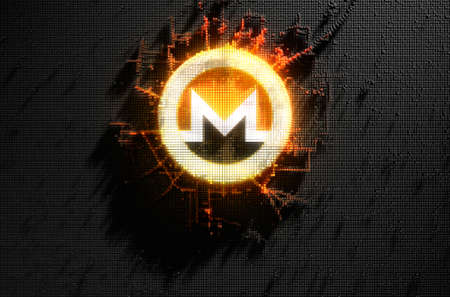 Birth or fork of monero cryptocurrency. Coin background real cold plasma.