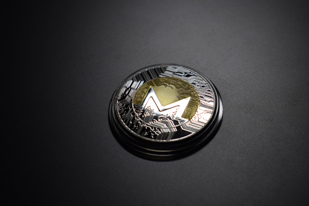 Monero crypto coin close-up on black background, crypto currency, business and finance concept photo