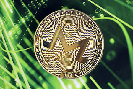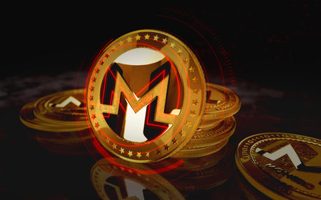 Monero cryptocurrency coin surrounded by a dark background. Digital Money.