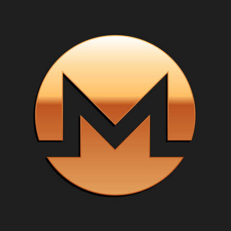 Gold Cryptocurrency coin Monero XMR icon isolated on black background. Digital currency. Altcoin symbol. Blockchain based secure crypto currency. Long shadow style. Vector