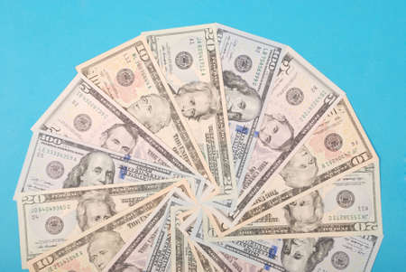 US american dollar money bills spread on white background
