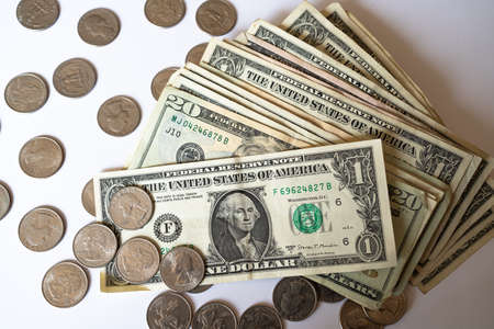 United States of America money, bills and coins.