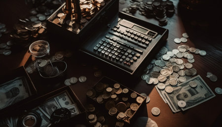 Coins placed in a linear pattern on a dark background create a striking visual contrast.