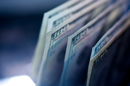 Close-up of one hundred dollar bills. Shallow depth of field.