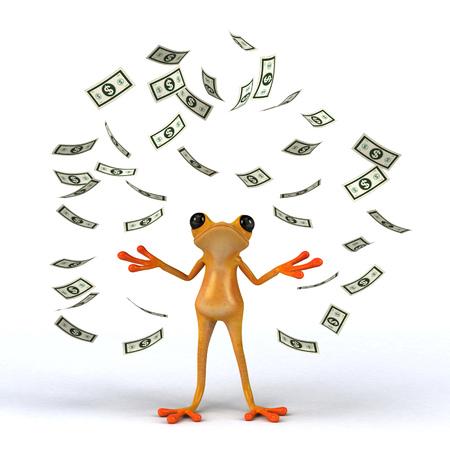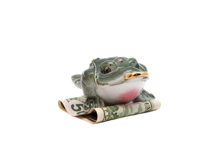 frog 2 dollar symbol wealth close-up concepts isolated on white background