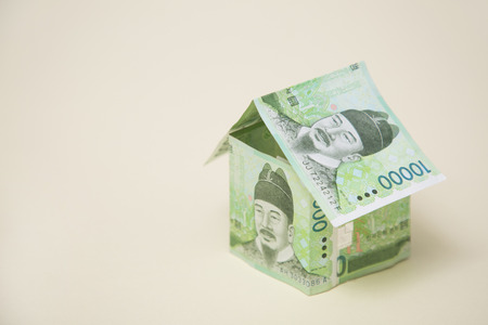 toy house on banknotes, buying your own home, mortgage, symbol of material well being