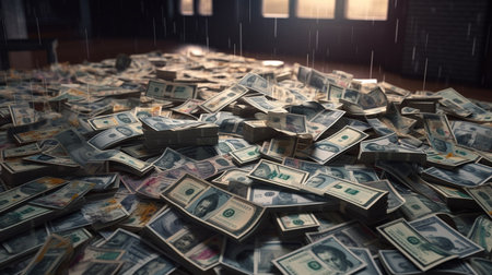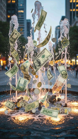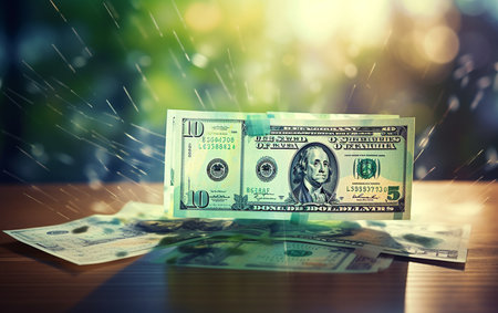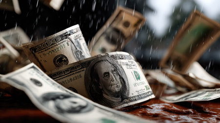 An artistic representation of dollar bills falling and getting soaked, creating a compelling narrative on the value and impact of money in our lives.