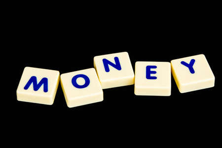 The word MONEY is spelled out using white tiles with black letters on a background of numerous twentypound banknotes featuring a portrait of Queen Elizabeth II.