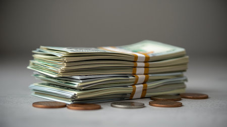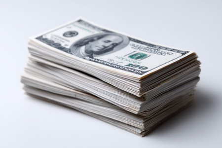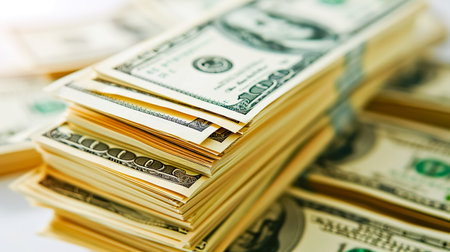 Close-up of stacked hundred-dollar bills, showing financial abundance, wealth, and investment potential.