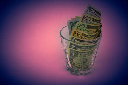 Selective focus on detail of USD banknotes. Counting or giving United States Dollars banknotes. World money concept, inflation and economy concept