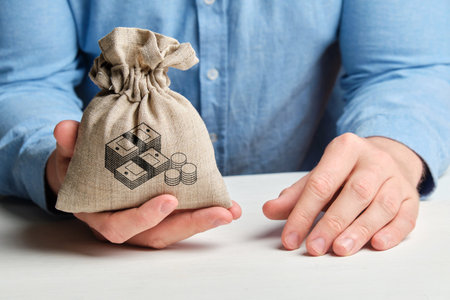 Hand gently holds a small burlap bag with a dollar sign, symbolizing savings, investment, financial security, or personal finance management