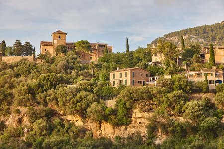 Traditional stone houses and tramuntana mountains in Deia. Mallorca, Spain