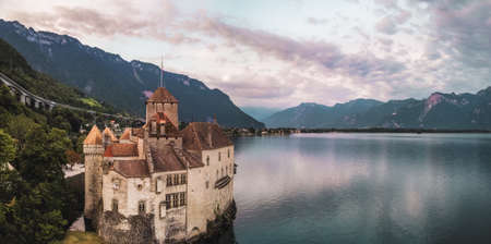 A beautiful shot of the Chillon castle and Lake Geneva in Switzerland