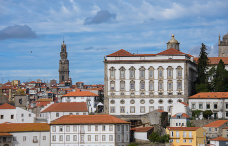 PORTO, PORTUGAL - APR 15, 2017: View of old Porto downtown from Clerigos Tower. City of Porto was elected from 20 selected Best European Destination 2017 and won this prestigious title.