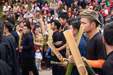 Thoet Thai, Chiang Rai - THAILAND, November 27, 2019 : Group of Shan or Tai Yai (ethnic group living in parts of Myanmar and Thailand) in tribal dress do native dancing in Shan New Year celebrations.