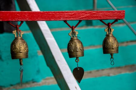 Good Luck Bells with Hearts. Buddhism traditions. in temple.