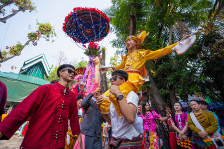 CHIANG MAI, THAILAND - MARCH 25; 2023 : Poy Sang Long festival, A Ceremony of boys to become novice monk, In parade around temple in Chiang mai, Thailand. Tai Yai, Shan Tradition. happy, fun, smile