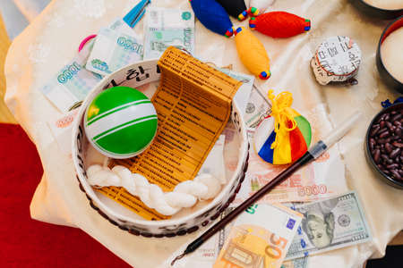 top view. decoration and accessories for Doljanchi. first birthday of a Korean.
