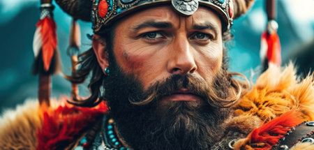 Portrait of a Slavic male warrior in a chain mail: the image of a strong and courageous image of a warrior, embodying the ancient Slavic culture and the spirit of warriorhood