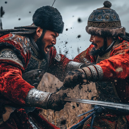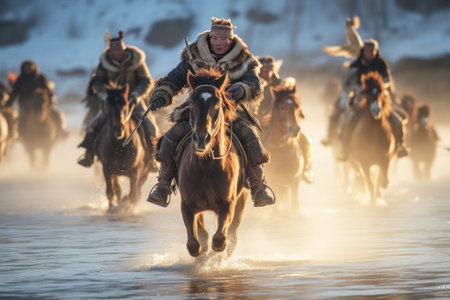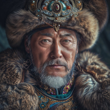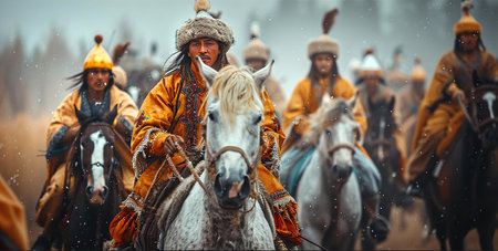 Tatar Mongols: nomadic warriors and conquerors, cultural legacy, military prowess, Eurasian steppes strength, traditional attire, resilience and the spirit of the historic nomadic lifestyle