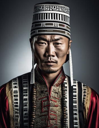 young asian man in fine Mongolian suit