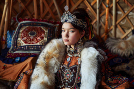 Mongolian ancient woman yurt. Ethnic culture. Generate AI