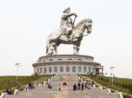 ULAANBAATAR, MONGOLIA - JULY 13, 2016: The Genghis Khan Equestrian Statue is a 40 metre tall statue of Genghis Khan on horseback at Tsonjin Boldog near Ulaanbaatar, Mongolia.