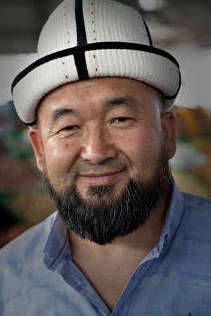 Kyrgyz man with local hat in Bishkek, Kyrgyzstan