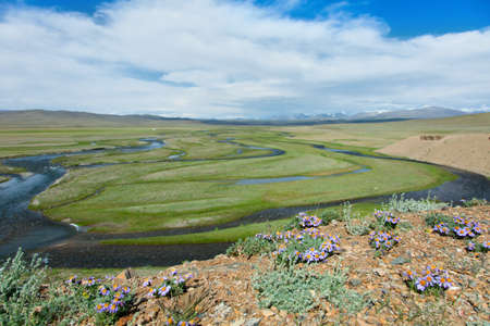 view of grassland of Mongolia. Mongolia landscape. Altai mountains