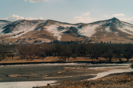 steppe and mountains landscape in Orkhon valley, Mongolia. High quality photo