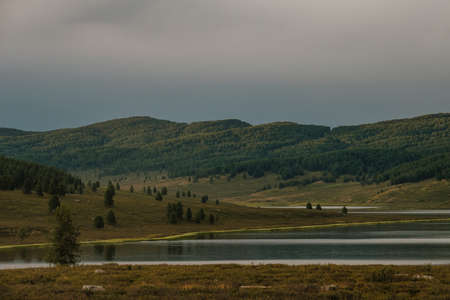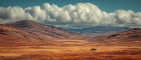 Mongolian landscapes in the Altai Mountains, wide landscape.