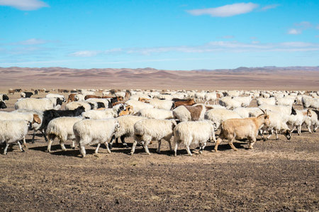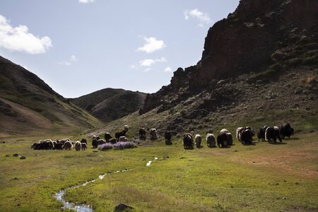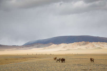 Pasture in the mountains of Mongolia. Landscapes of Mongolia, panorama of mountains in the Gobi desert.
