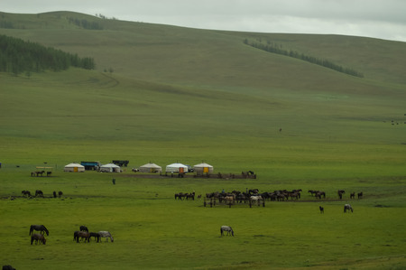 This is how Mongolian people live nomadic style with their traditional yurt in Mongolia. High quality photo