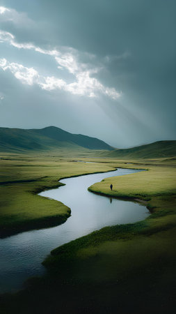 Summer's Embrace: The Kashgar Grasslands Bathed in Sunlight. AI-generated