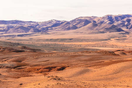 Russia. Mountain Altai. Desert steppes at the foot of the North Chui mountain range along the Chui tract.