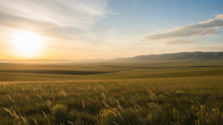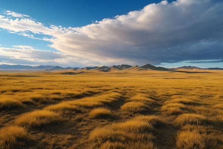 Vast grasslands and distant mountains and sky landscape