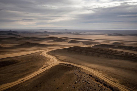 A winding road in the desert, a lonely journey through the desolate earth