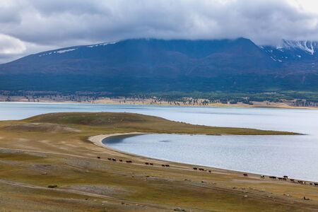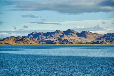 Mongolia. mountain lake Tolbo Tuur, Bright sunny day