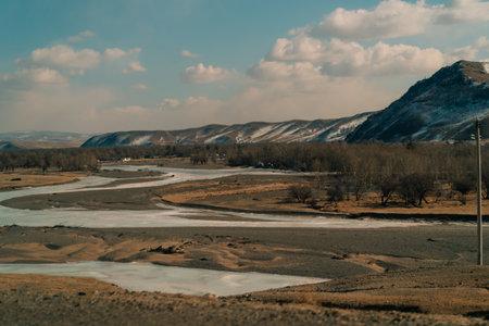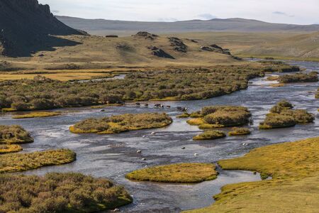 river flows along the mountains in Mongolia