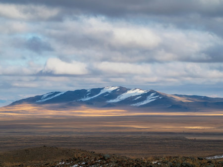 Dry Mongolian landscapes in the Altai Mountains, wide landscape.