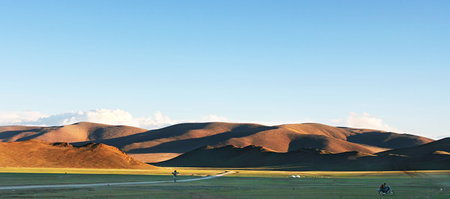 Traditional Mongolian landscape in the sunset