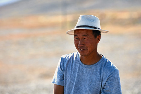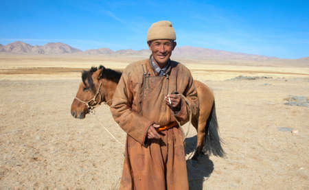 Portrait of a modern Mongolian nomad. 09/06/2019. Gobi Desert, Mongolia.