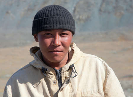 China, January 1st, 2019: Portrait of a resident of the Tibet Autonomous Region. Nomadic people of Tibet.