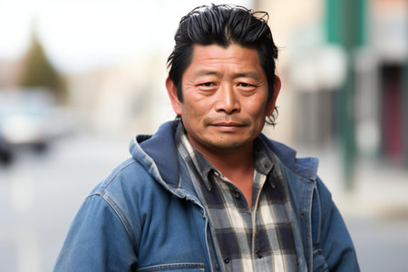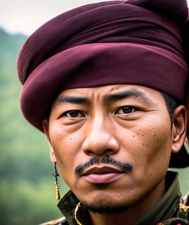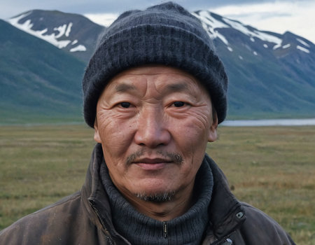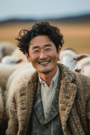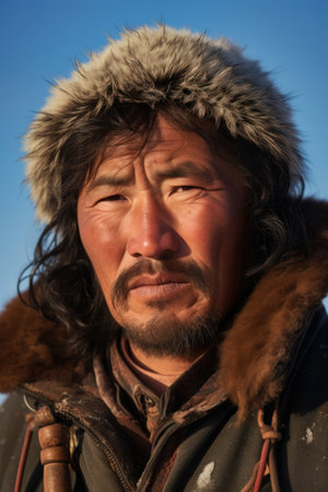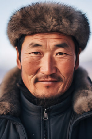 The man Mongolian closeup smiling at the camera