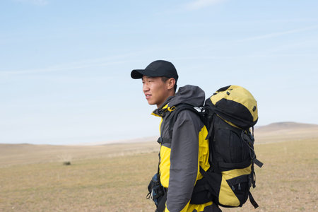 hike in autumn grasslands of Inner Mongolia