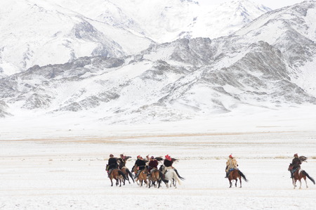 bayan Ulgii, Mongolia, 4th October 2015: kazakh eagle hunter in alandscape of western Mongolia