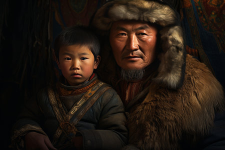 Mongolian family is photographed at his home